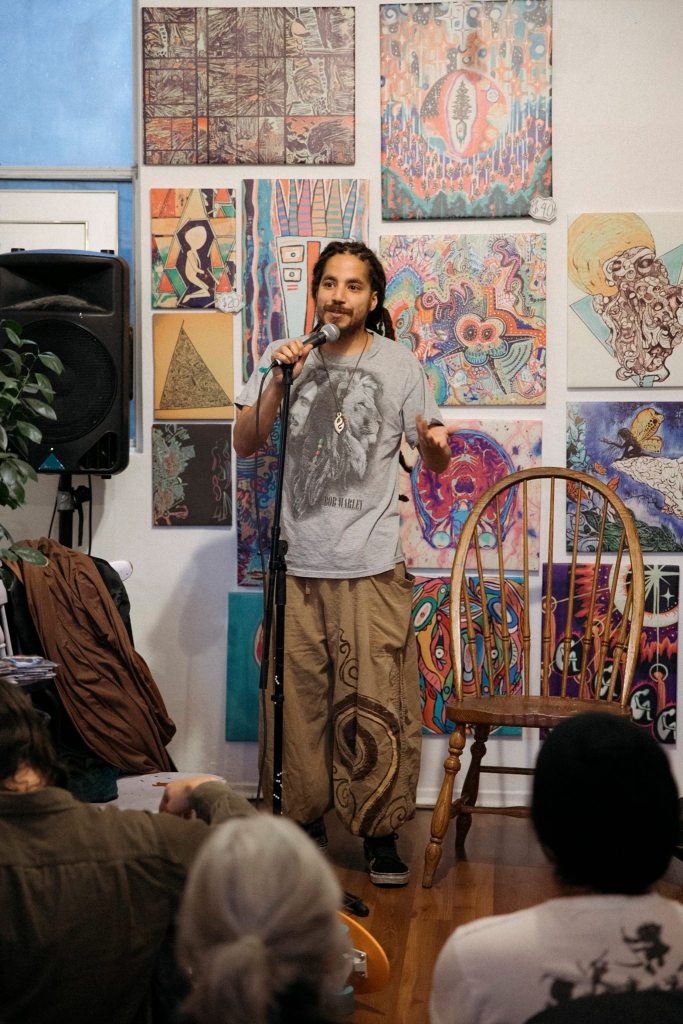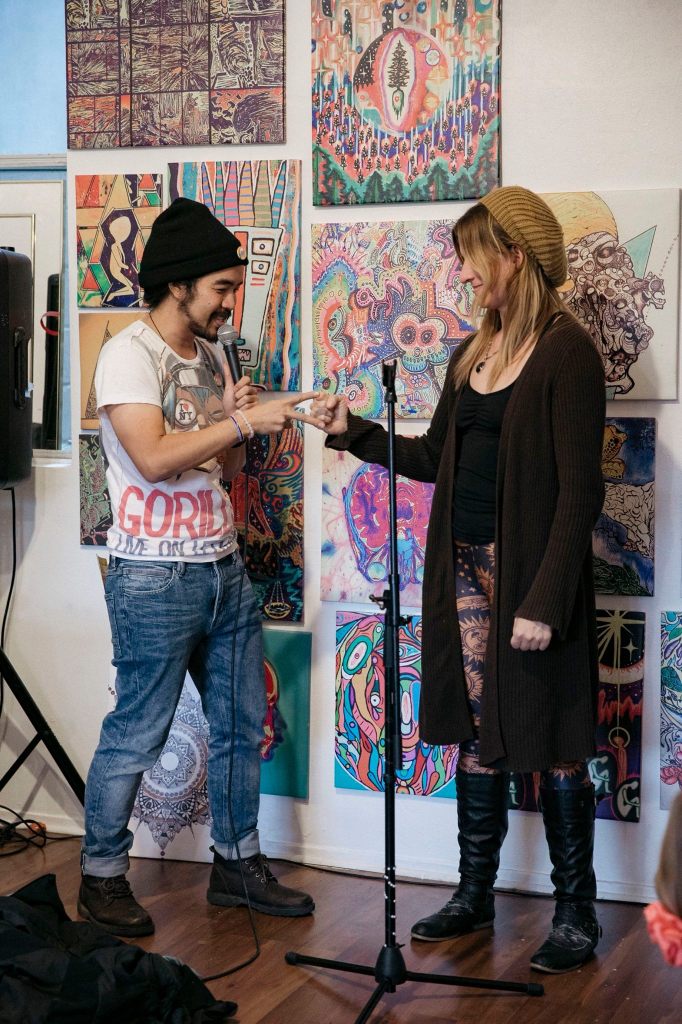 The FreeFlow Showcase began as a collaboration between Anto, Adrian and I. With the excitement around the last gathering Adrian was eager to have more shows in the space. We decided to start with a monthly show that we called the FreeFlow Showcase and Open Mic. It was a variety show with headlining spots, invited openers, and open mic spots throughout the night.