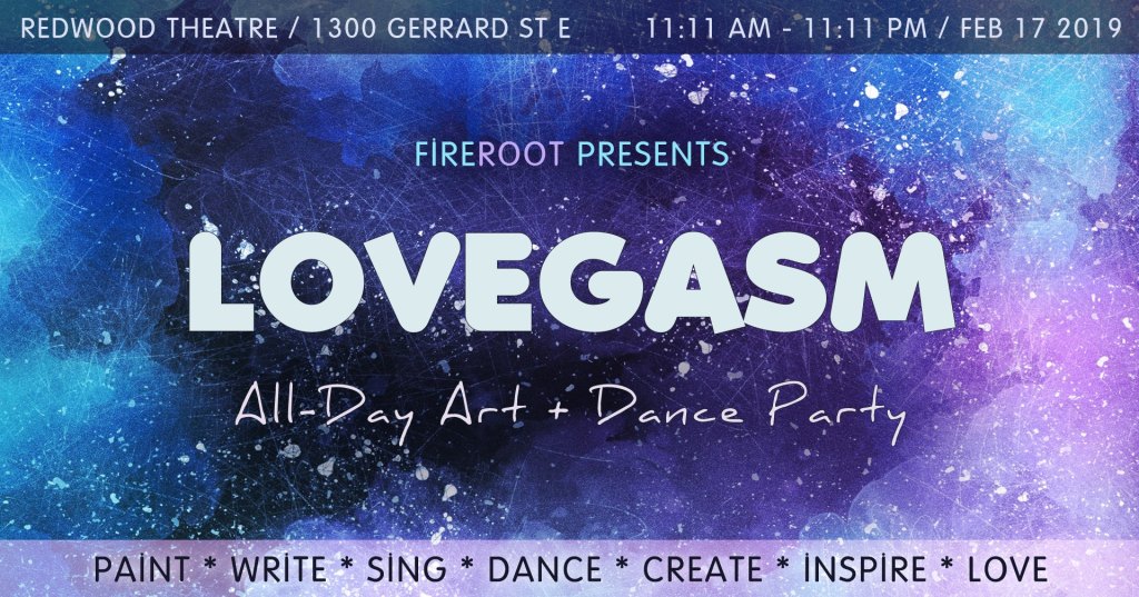 Lovegasm was an all day art and dance party produced by the FireRoot Collective on February 17, 2019 @ the Redwood Theatre in Toronto, Ontario, Canada.
